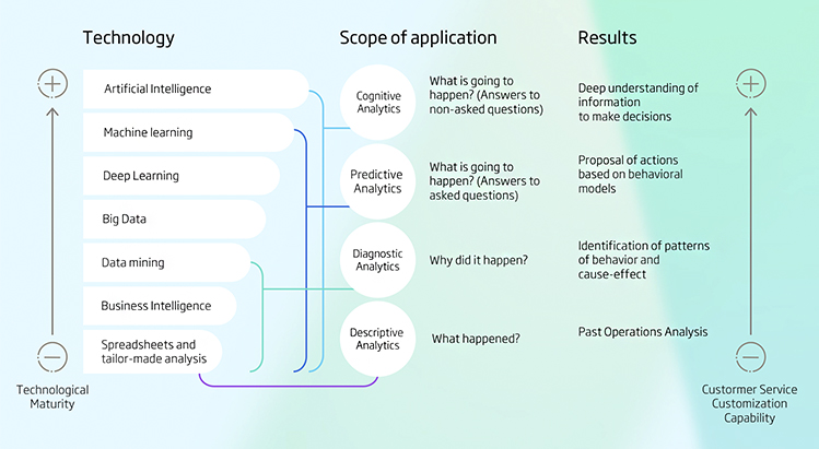 To actively promote a constant and fluid communication associated with these vital moments as the foundation of a differentiating Customer Service, a deep knowledge of the client is required. This knowledge must not be static, but must evolve together with the changes that the client experiences. Therefore, it must be enriched and updated in a continuous cycle of collection, analysis and exploitation of knowledge (both from the client's relationship with the Company and from public social information). In addition, this information should be provided to the systems and agents that execute the Customer Service in a "ready to use" format.